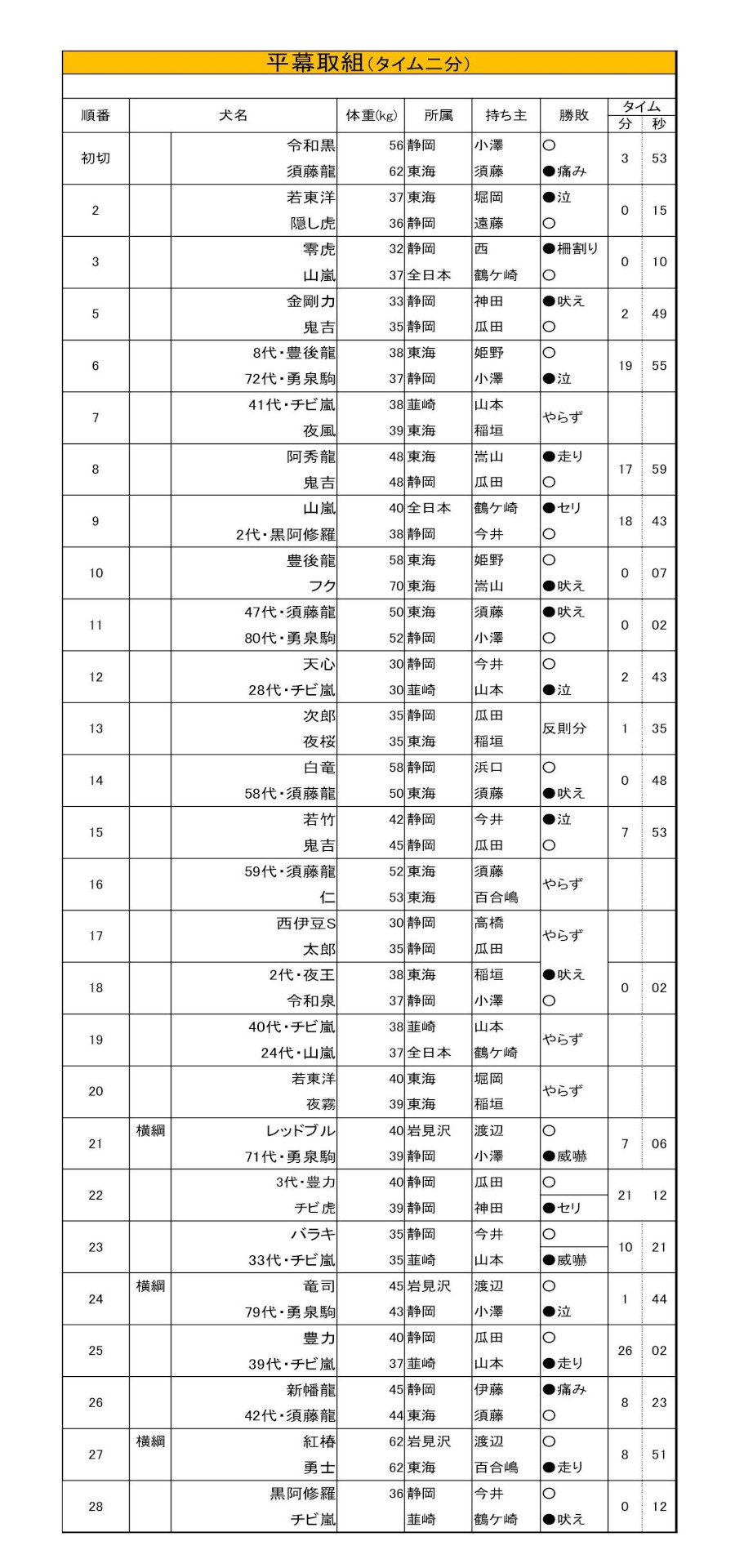 平幕取組(タイム二分)